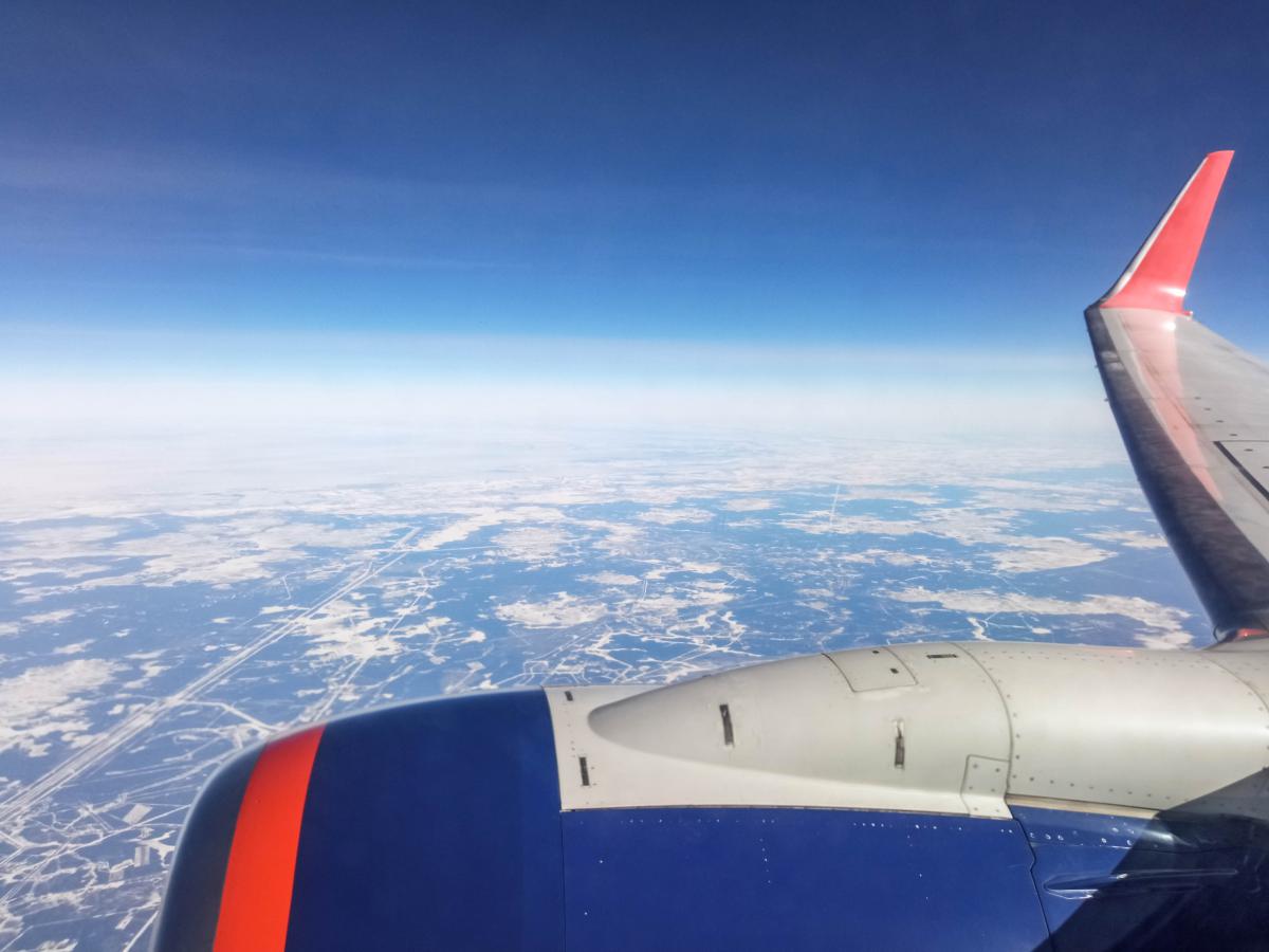 Авиационный год начал одновременно с календарным. Мне кажется, я никогда еще не улетал 1 января, тем более так рано – вылет самолета в Калиниград был намечен на 12:05. По расписанию мы, конечно же, не взлетели – погода способствовала противообледенительной обработке поверхностей, но оказаться в воздухе в 12:37, тоже хорошо для такого авиаманьяка как я 🙂