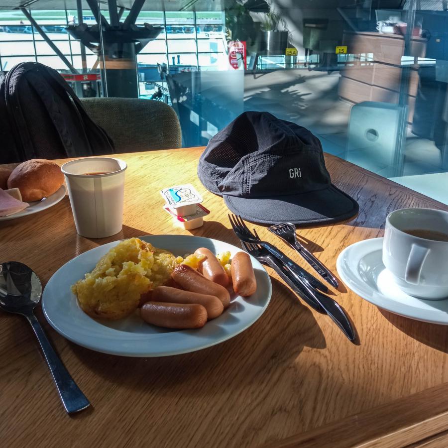 В аэропорт прибыл пораньше, чтобы неспеша позавтракать в бизнес-зале. “Сочи” не самый крутой лаунж, но по сравнению, скажем с внуковским “Прокофьевым”, вполне себе. Омлет, сосиски, рис с овощами и, конечно же игристое под ёлочкой. Тинькоффский Премиум второй или третий месяц достается мне бесплатно и вполне оправдывает свое существование такими моментами.